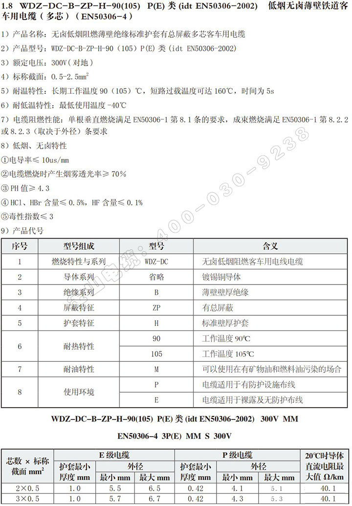 以下是本产品WDZ-DC-B-ZP-H-90(105)带总屏蔽多芯动车组电缆的详细参数: